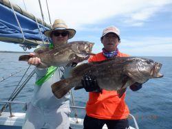 7/6 東京都の広渡さん、青海さん 2名 クエ 60〜100p 3尾 水温 24.8℃ |