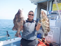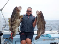 9/30 菊川市の恩田さん、掛川市の松尾さん 4名 コブダイ 75p 1尾 ヒゲダイ 65p 1尾 水温 25.5℃ |