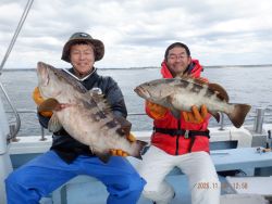 3/27 東京都の石坂さん 5名 クエ 60〜75p 2尾 水温 17.0℃ |