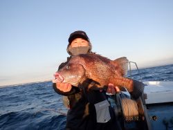 1/12 瀬戸市の田畑さん 2名 イサキ 28〜33p 15尾 マダイ 30〜37p 2尾 シマアジ 37p 1尾 メイチダイ 35p 1尾 クエ 70p 1尾 水温 16.1℃ |