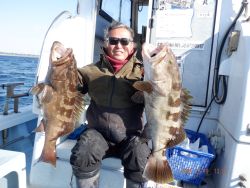 1/23 厚木市の増沢さん、犬山市の小川さん 4名 クエ 70〜118p 3尾 水温 16.8℃ |