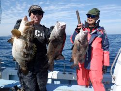 4/5 焼津市の寺尾さん、静岡市の近藤さん 3名 クエ 70〜95p 3尾 水温 16.0℃ |